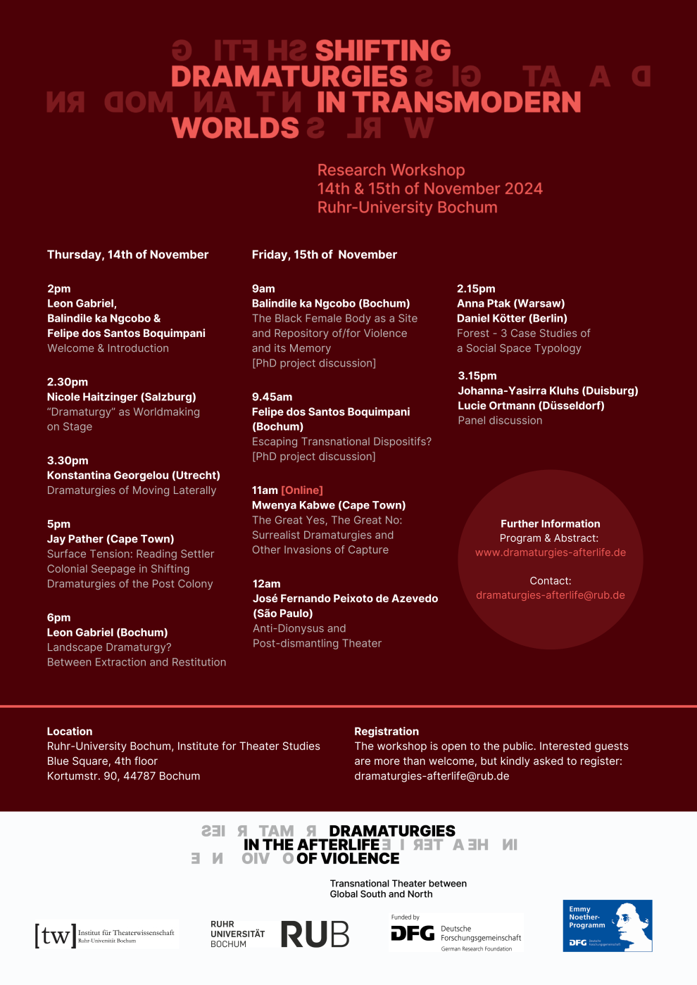 Venue: Ruhr-University Bochum, BlueSquare (Kortumstr. 90, 44787 Bochum), 4th floor.